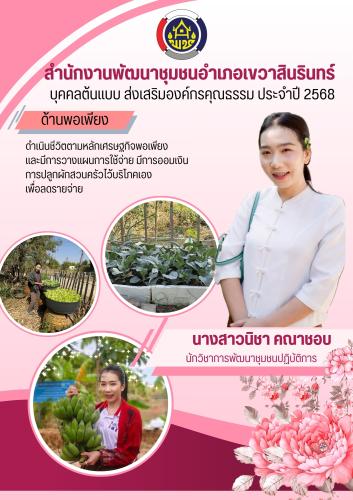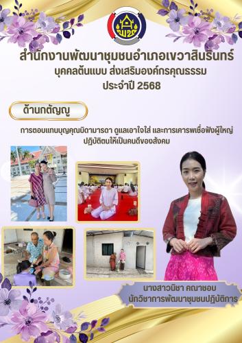 สำนักงานพัฒนาชุมชนอำเภอเขวาสินรินทร์ ประชาสัมพันธ์ผลดำเนินการความสำเร็จของการขับเคลื่อนองค์กรคุณธรรม มิติองค์กรคุณธรรม ประจำปีงบประมาณ พ.ศ.๒๕๖๘
